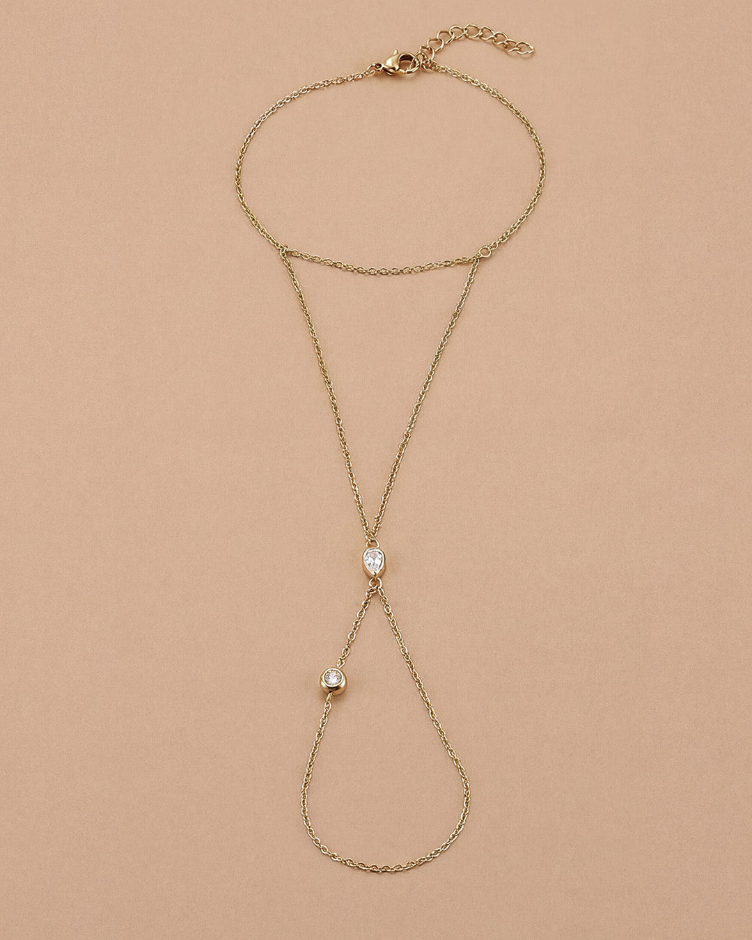Delicate yet striking, the Diamond Hand Chain is designed to elevate your look with subtle sophistication. This refined piece connects a fine chain bracelet to a finger ring, accented with delicate diamond-style stones that add just the right amount of sparkle.